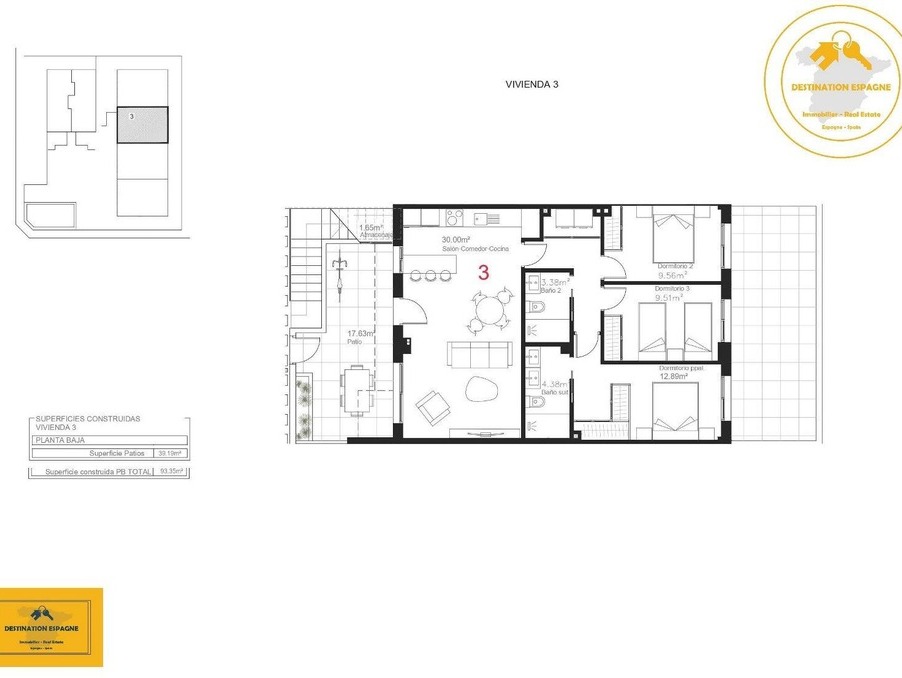 Caractéristiques: 3 chambres, 2 salles de bain, Cuisine ouverte, Salle à manger, Salon ouvert, Terrasse de 21,56 m2 , autre Terrasse de 17,63 m2 ......