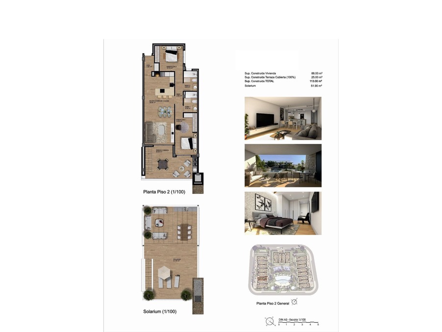Caractéristiques : 2 chambres, 2 salles de bain, Cuisine ouverte, Salle à manger, Salon ouvert sur la piscine, Grande terrasse couverte de 25 m², Solarium privé de 51,90 m2 …..