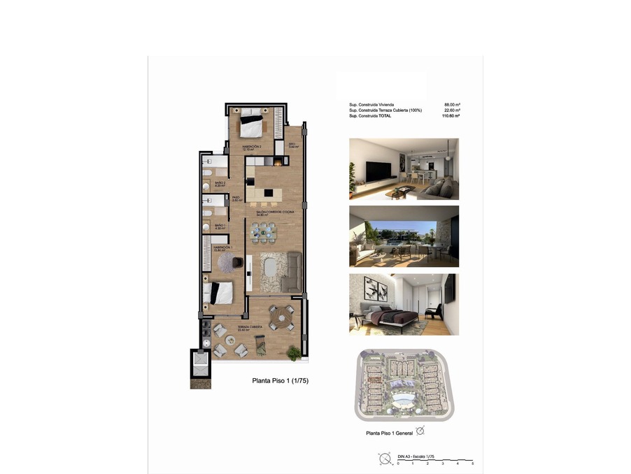 Caractéristiques : 2 chambres, 2 salles de bain, Cuisine ouverte, Salle à manger, Salon ouvert sur la piscine, Grande terrasse couverte de 22,60 m² …..
