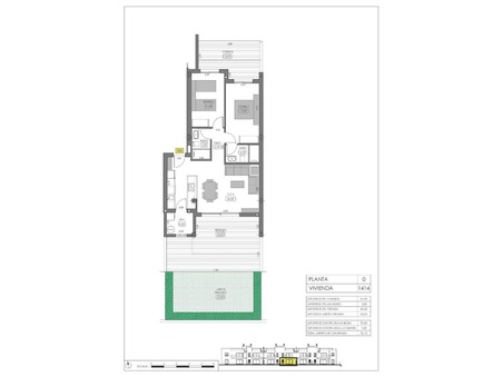 Caractéristiques: 3 chambres, 2 salles de bain, Cuisine ouverte, Salle à manger, Salon ouvert, Grande Terrasse de 41,50 m2, Jardin …..