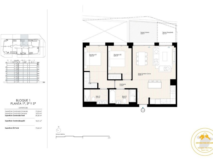 Caractéristiques: 2 chambres , 2 salles de bain , Cuisine aménagée et équipée, Salon - Salle à manger, Belle Terrasse de 14,16 m2, dans un cadre magnifique ….. etc …