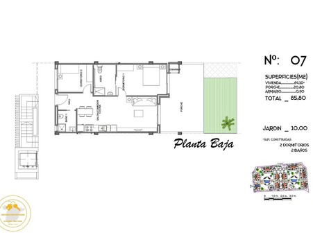 - Équipé d'un espace vert composé d'une grande piscine avec quatre zones : zone enfants, zone pour adultes, zone de plage et douche, ainsi qu'un terrain de pétanque, de grandes aires de jeux pour enfants, un gymnase extérieur, une mini-gym et mini-golf.[IW]