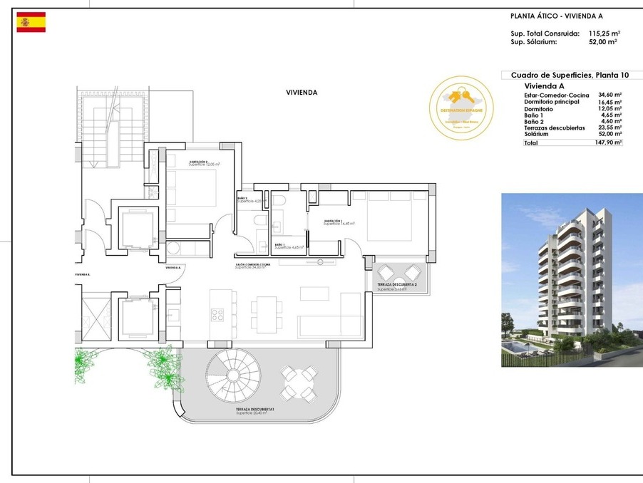 Très bel Appartement Penthouse Neuf F3 à Guardamar del SeguraLivraison en Mai 2027