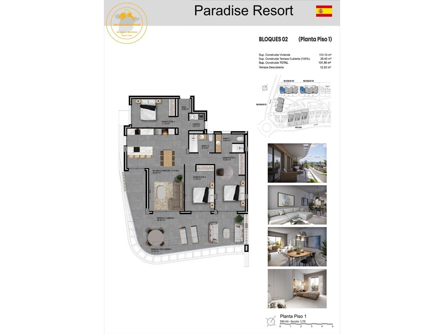 Caractéristiques : 3 chambres, 2 salles de bain, Cuisine ouverte, Salle à manger, Salon ouvert, Terrasse Couverte de 28,40 m², Terrasse de 12,20 m2 . .....