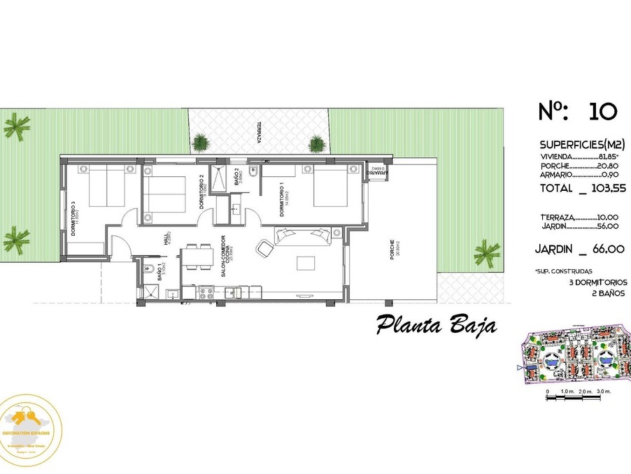 - Équipé d'un espace vert composé d'une grande piscine avec quatre zones : zone enfants, zone pour adultes, zone de plage et douche, ainsi qu'un terrain de pétanque, de grandes aires de jeux pour enfants, un gymnase extérieur, une mini-gym et mini-golf.[IW]