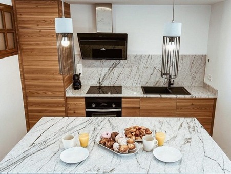 La cuisine ouverte est entièrement équipée d'appareils intégrés, dont un réfrigérateur/congélateur, un lave-linge, une plaque de cuisson vitrocéramique, un four à micro-ondes et une hotte aspirante, ce qui permet d'allier harmonieusement forme et fonction.