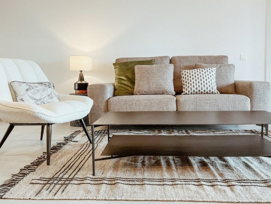 Le salon et la salle à manger spacieux s'ouvrent sur une terrasse ensoleillée, créant un flux continu entre les espaces intérieurs et extérieurs, parfaits pour se détendre et recevoir.