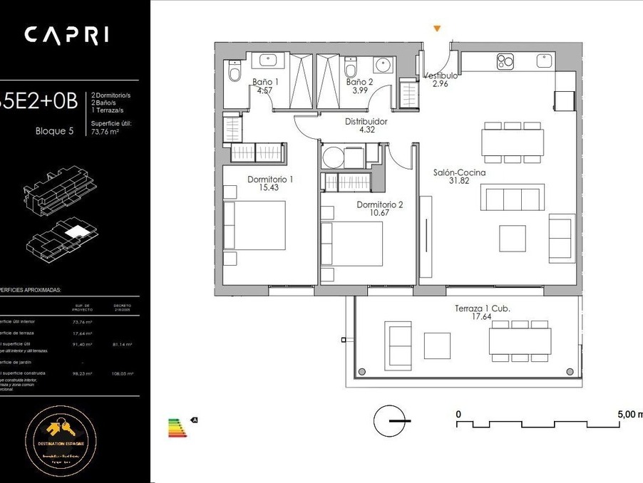 Caractéristiques: 2 chambres, 2 salles de bain , Cuisine ouverte, Salle à manger, Belle Terrasse de 17,63 m2… etc …