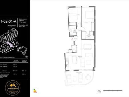Caractéristiques : 2 chambres, 2 salles de bain, Cuisine ouverte, Salle à manger, Salon, Jolie Terrasse de 15,92 m2 ...