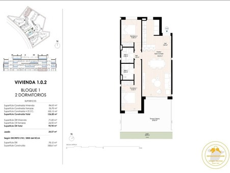 Caractéristiques: 2 chambres, 2 salles de bain , Cuisine ouverte, Salle à manger, Terrasse de 24,92 m2, Jardinet de 34,07 m2… etc …