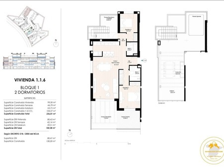 Caractéristiques: 2 chambres, 2 salles de bain , Cuisine ouverte, Salle à manger, Terrasses de 44,79 m2, Solarium Privé de 63,75 m2… etc …