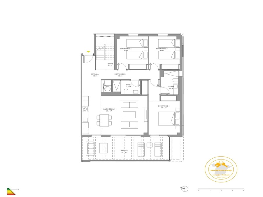 Caractéristiques : 3 chambres, 2 salles de bain, Cuisine ouverte, Salle à manger, Salon, Jolie Terrasse de 20,10 m2 , Solarium Privé de 61,90 m2 ...