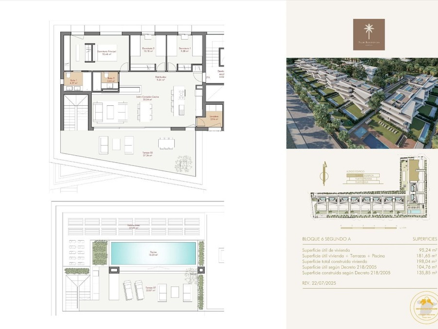 Caractéristiques: 3 chambres, 2 salles de bain , Cuisine ouverte, Salle à manger, Terrasse de 37,35 m2, Solarium Privé (avec Piscine Privé en Option) de 33,87 m2… etc …