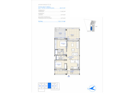 Caractéristiques : 3 chambres, 2 salles de bain, Cuisine ouverte, Salle à manger, Terrasse de 130 m², Piscine Communautaire … etc …