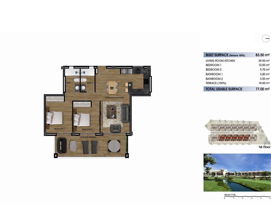Caractéristiques: 2 chambres, 2 salles de bain , Cuisine ouverte, Salle à manger, Magnifique Terrasse de 18 m2… etc …