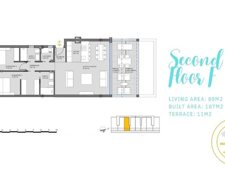 Caractéristiques: 2 chambres, 2 salles de bain, Cuisine ouverte, Salle à manger, Salon ouvert, Terrasse de 19 m2 ......
