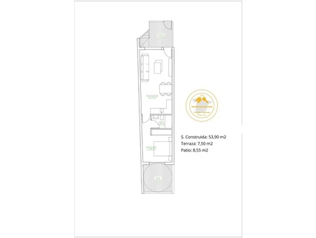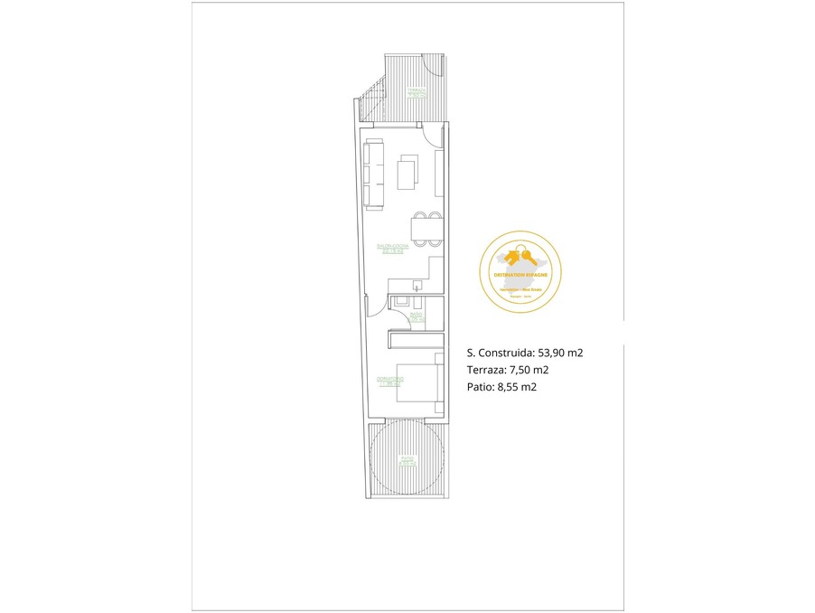 Caractéristiques: 1 chambre, 1 salle de bain, Cuisine ouverte, Salle à manger, Salon ouvert, Terrasse de 7,50 m2 et Patio de 8,55 m2 ......