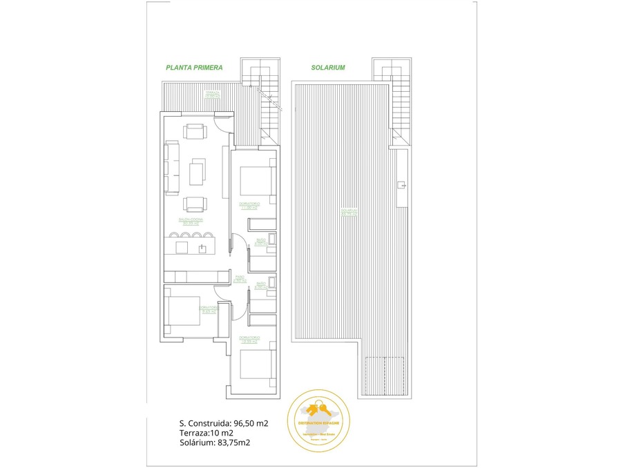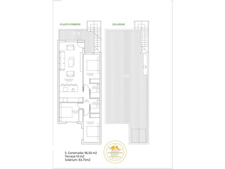 Caractéristiques: 3 chambres, 2 salles de bain, Cuisine ouverte, Salle à manger, Salon ouvert, Terrasse de 10 m2 et Solarium Privé de 83,75 m2 ......