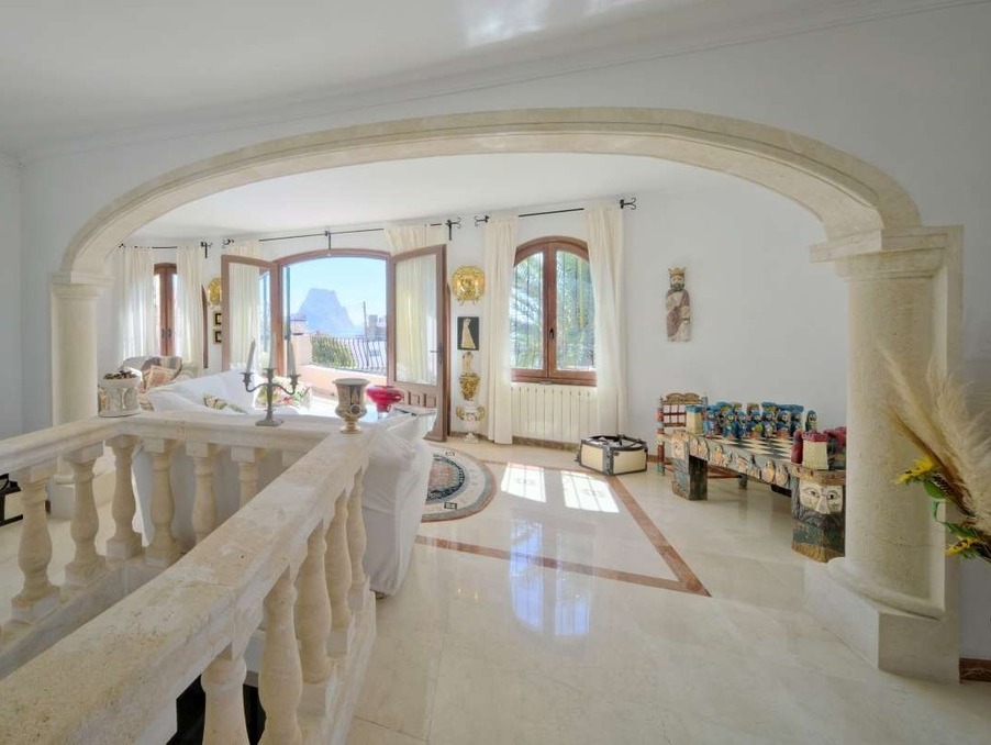 Montez à l'étage pour découvrir un espace de vie ouvert supplémentaire, une chambre et une salle de bains. De là, la terrasse offre une vue panoramique, avec le majestueux Peñón de Ifach se profilant au loin, se dressant fièrement comme le gardien de la Costa Blanca.