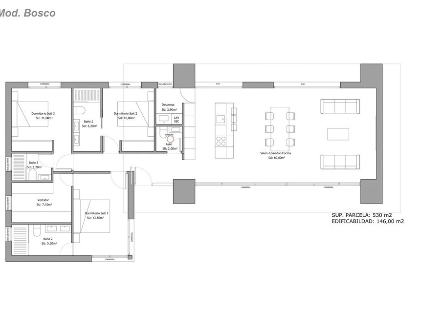 Caractéristiques: 3 chambres , 3 salles de bain , Cuisine ouverte, Salle à manger, Salon ouvert, Grande Terrasse, Parcelle de 530 m2…