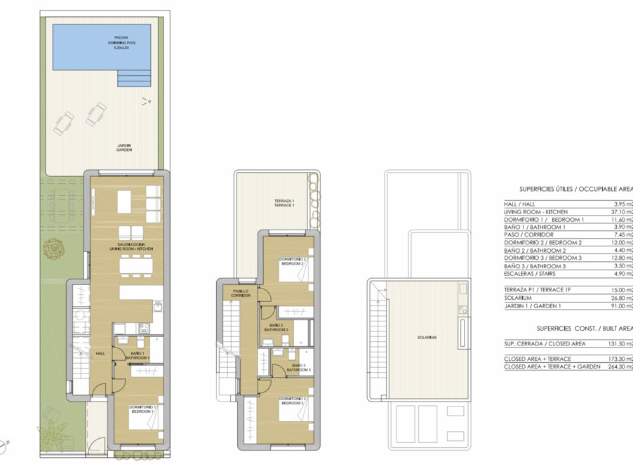 Caractéristiques: 3 chambres, 3 salles de bain, Cuisine ouverte, Salle à manger, Salon ouvert, Piscine, Terrasses de 15 m2, Solarium Privé de 26,60 m2 …
