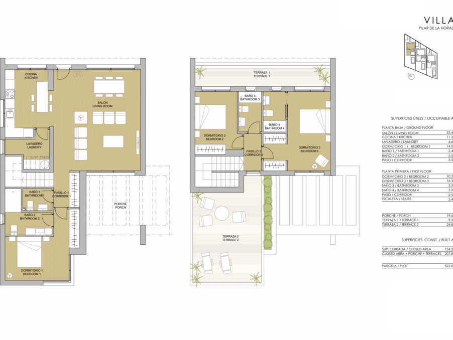 Caractéristiques: 3 chambres, 4 salles de bain, Cuisine ouverte, Salle à manger, Salon ouvert, Piscine, Grandes terrasses de 34 m2, Patio de 19,60 m2 …