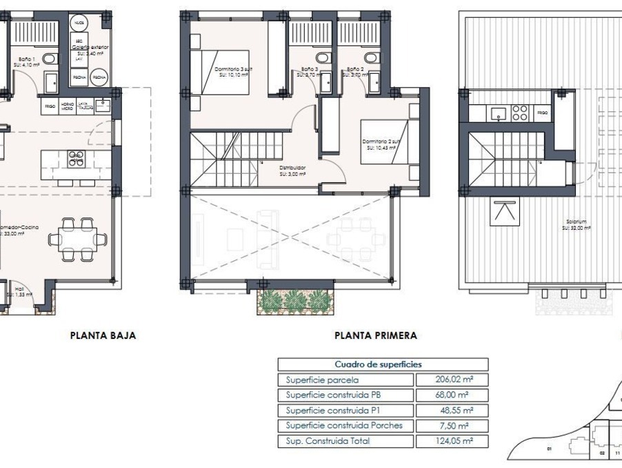 Caractéristiques : 3 chambres, 3 salles de bain, Cuisine ouverte, Salle à manger, Salon ouvert, Grande Terrasse, Solarium de 52 m2 .....