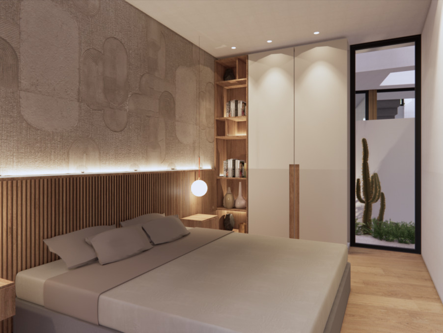 Cette villa est construite sur deux étages avec un Solarium (une terrasse sur le toit) et elle est équipée de 3 chambres et 3 salles de bains avec un look moderne.