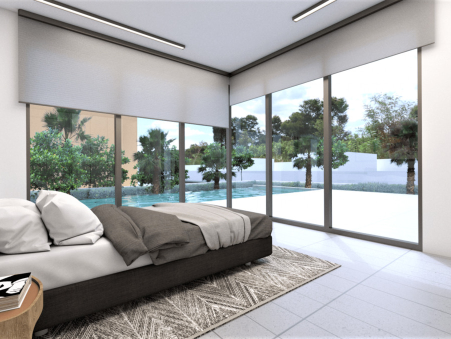 La surface construite est de 333 m2. La Villa comprend 4 chambres à coucher, 6 salles de bains, salon, cuisine, 2 terrasses, solarium, piscine privée et parking.
