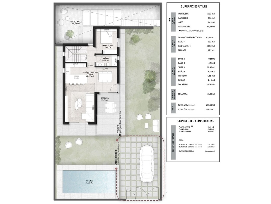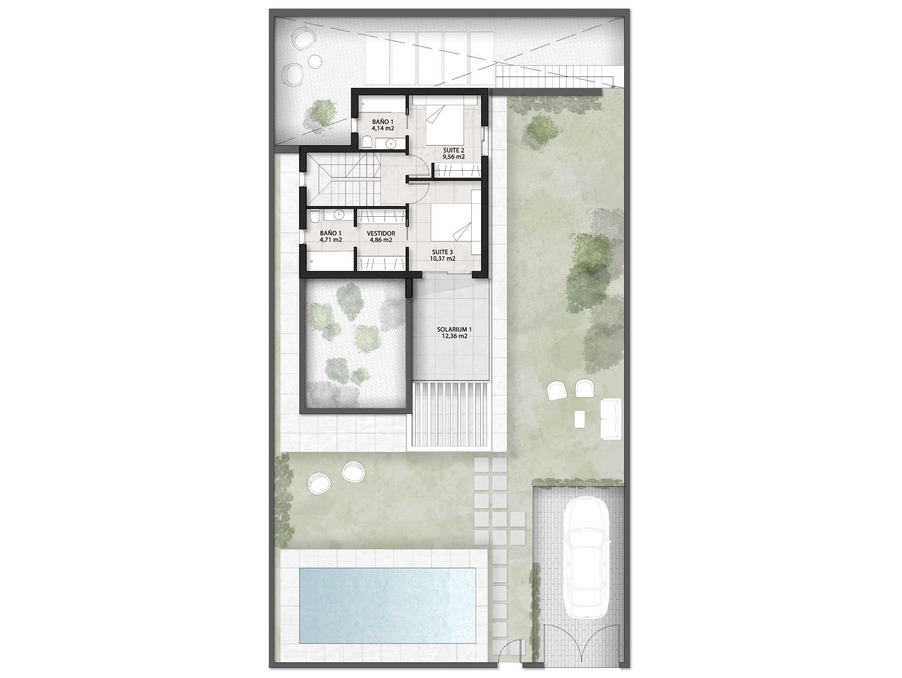 Chaque villa est située sur un terrain d'environ 350 m2 et sa conception a été soigneusement pensée pour offrir une tranquillité et un confort absolus, grâce à ses espaces spacieux et lumineux qui invitent à profiter de l'extérieur et de la nature environnante.