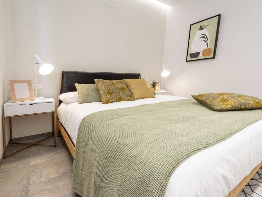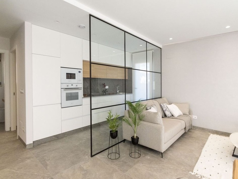Rez-de-chaussée avec salon, cuisine, chambre double et salle de bain complète