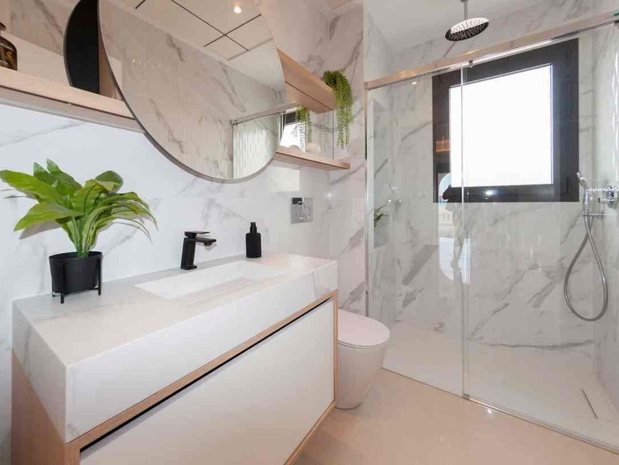 Cette villa dispose de 3 chambres à coucher et de 2 salles de bains, d'un espace de vie spacieux avec un plafond à double hauteur dans la salle à manger qui apporte plus de lumière et une sensation d'espace. Vous pouvez également profiter de ses espaces extérieurs tels que le solarium et le jardin avec une piscine privée