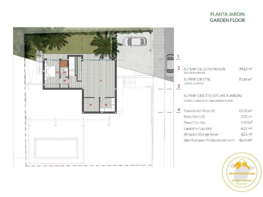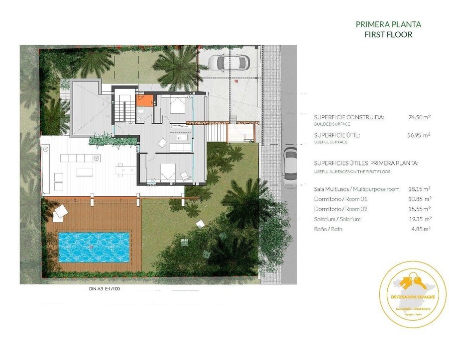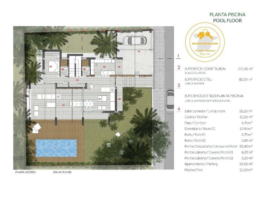 Au total, près de 100 m² d'espace social avec piscine et jardin méditerranéen qui grandira avec vous, développé sur deux niveaux pour permettre un accès direct depuis les deux étages et profiter au maximum des 500 m² de parcelles.
