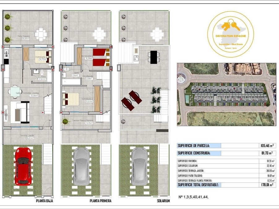 Caractéristiques: 3 chambres, 2 salles de bain, Cuisine ouverte, Salle à manger, Salon ouvert, Terrasse de 36,85 m2 , Patio de 19,07 m2, Solarium de 32,10 m2 .....