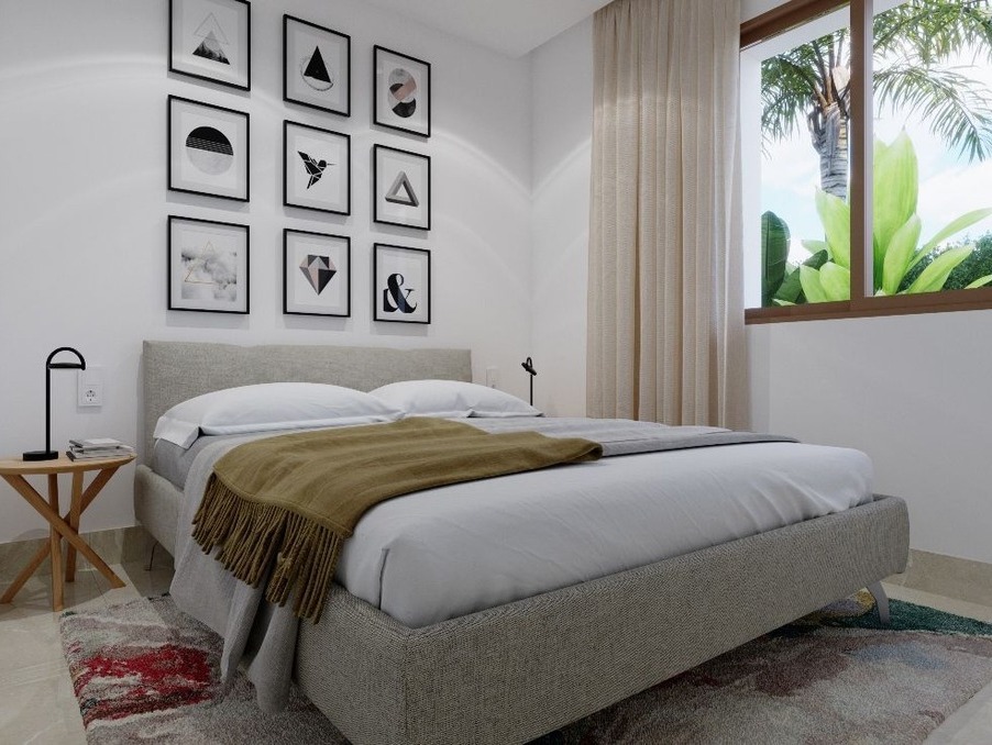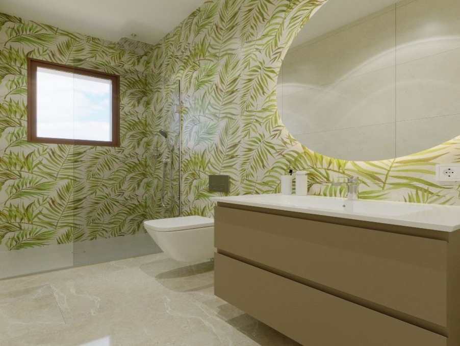 Caractéristiques : 3 chambres, 3 salles de bain, Cuisine ouverte, Salle à manger, Salon ouvert, 2 Grandes Terrasses de 19,70 m² et de 15 m2, Solarium de 51,42 m², Jardin, Climatisation … etc …