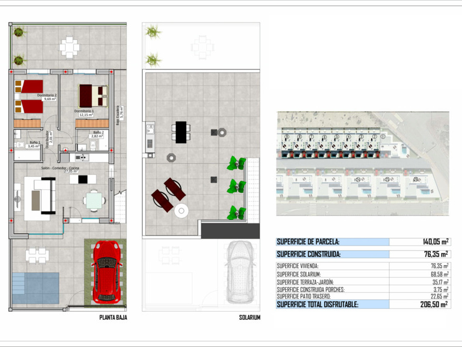 Caractéristiques: 2 chambres, 2 salles de bain, Cuisine ouverte, Salle à manger, Salon ouvert, Terrasse de 35,17 m2 , Patio de 22,65 m2, Solarium de 68,58 m2 .....