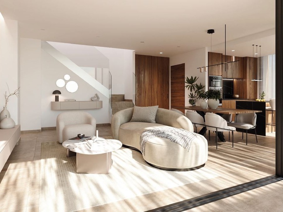 Cette villa individuelle moderne de quatre chambres allie harmonieusement luxe, confort et charme méditerranéen sur deux niveaux, soigneusement conçus pour optimiser l'espace et la fonctionnalité.