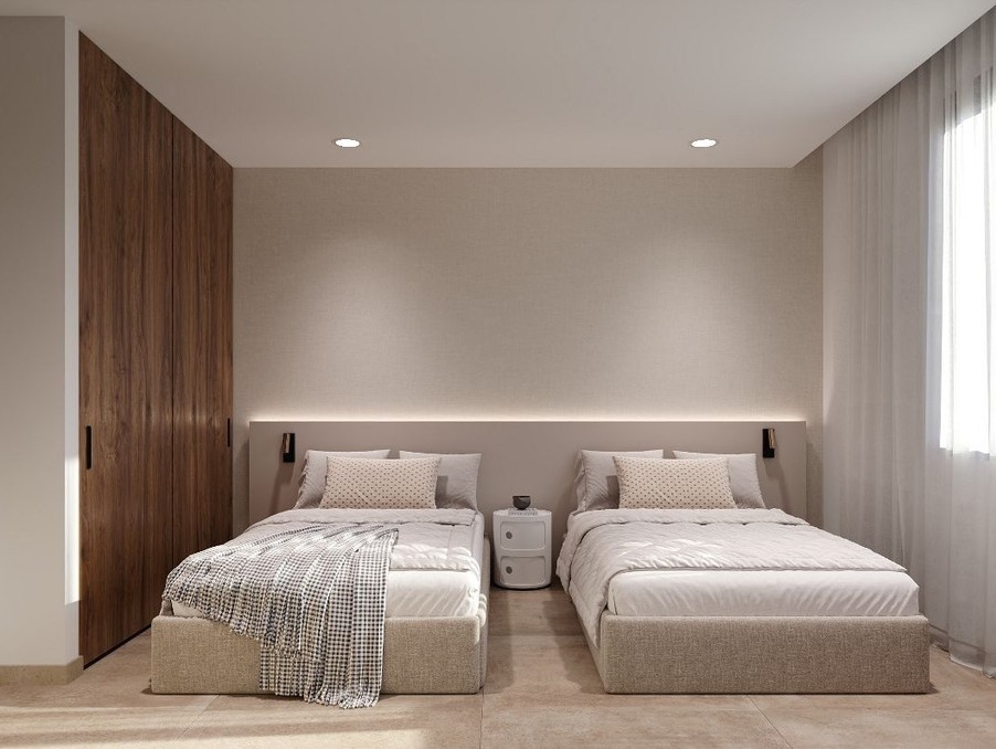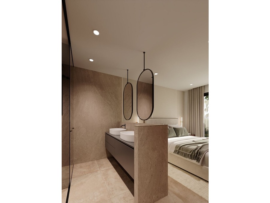 Cette villa individuelle contemporaine de trois chambres allie harmonieusement luxe, confort et charme méditerranéen sur deux niveaux soigneusement conçus, alliant espace et fonctionnalité.
