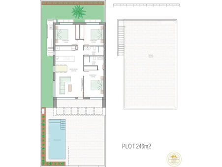 Caractéristiques: 3 chambres, 2 salles de bain, Cuisine ouverte, Salle à manger, Salon ouvert, Grande Terrasse, Solarium Privé de 102 m2 …..